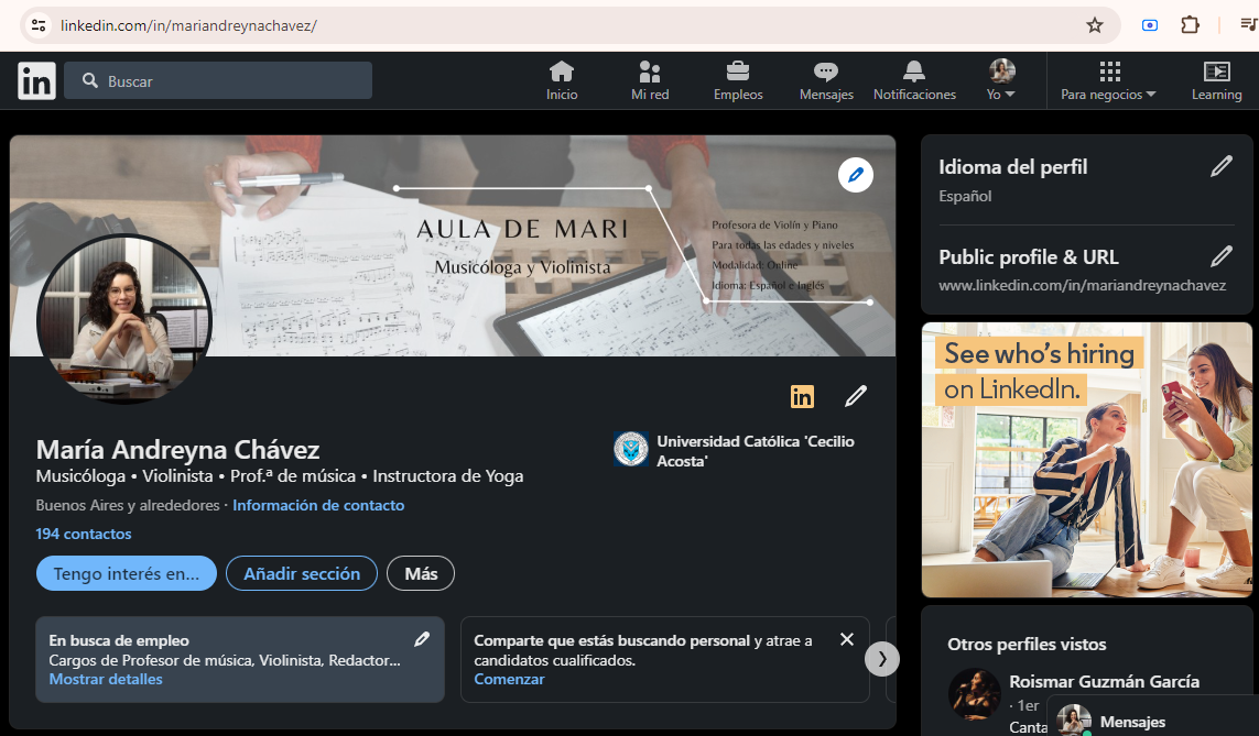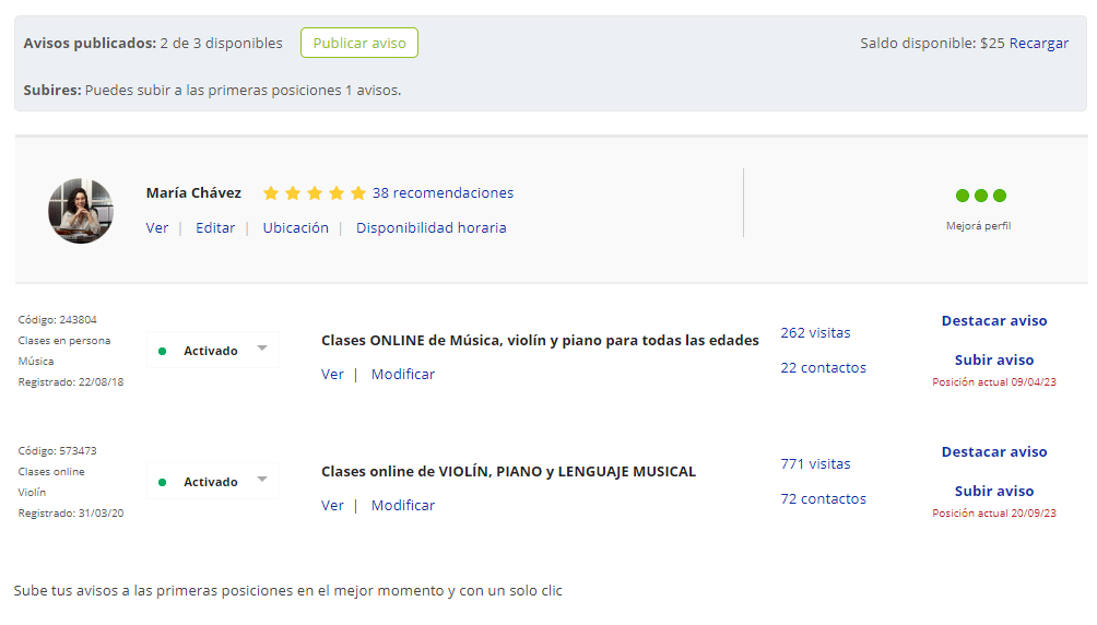 Tengo perfil en todas estos sitios porque desde la pandemia, que todo se convirtió en virtual 💻, me activé fuertemente para conseguir alumnos y así asegurar mi entrada mensual y obviamente, hacer lo que me gusta 😍. Sí es cierto, que a la que más le dedico es a TusClases, he pagado para destacar los avisos, para subirlos y así estar en las primeras páginas de búsquedas🔎, además es el perfil que tiene más recomendaciones (es la que le comparto más a mis alumnos)🗣.